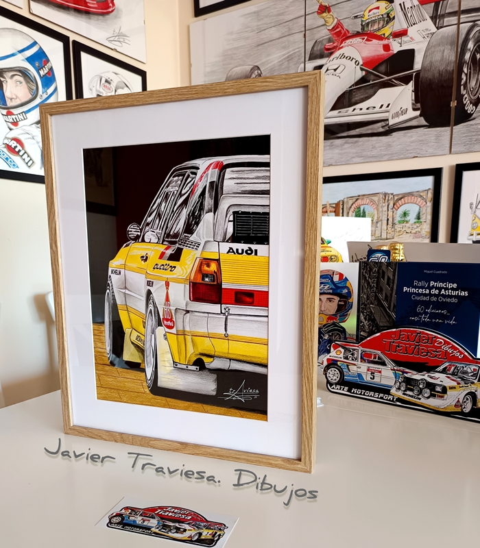 CUADRO ENMARCADO DIBUJO AUDI SPORTQUATTRO 42x52cm.
