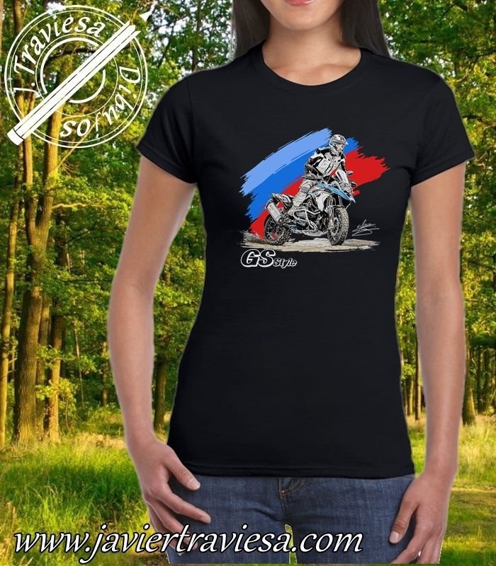 – sin duda la, Camiseta negra mujer moto bmw R1250GS es tu camiseta off road ideal